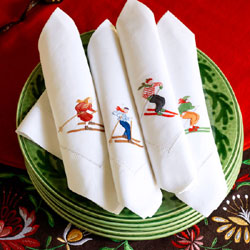 Dress a table in winter whimsy. Nordic embroidered napkins, set of 4 for $30.60 from www.wisteria.com