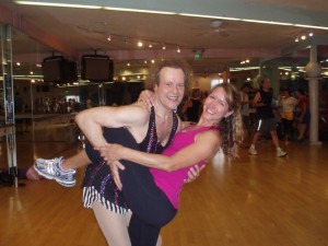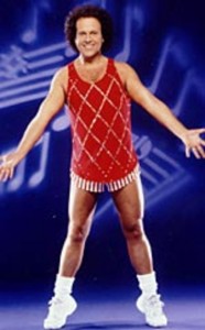 I took Richards class after a friend and her husband took it on a whim. We all know him from the countless times we’ve seen him on TV, his books, his DVDs, but what I hadn’t known was that he was merely 15 minutes from my doorstep. And once I saw the photos they took with him, I knew I had to meet the icon and see what all the sweat was about. He wears the dazzling tanks and striped shorts and arrives to a packed class full of men and women of all sizes. And it appears there’s always visiting some Parisians. Richard is global.