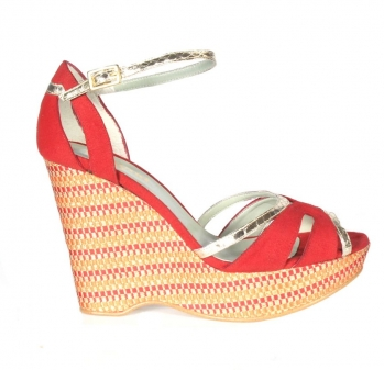 Beyond Skin cute & sassy vegan Retro 70’s style wedge Siam red Haiti print, $277.38