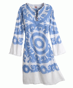 Each caftan is lovingly crocheted and sewn in the homes of underprivileged Lebanese women, many of whom are widows, of diverse backgrounds. These one-of-a-kind pieces intricately trimmed with beads and printed in bold solid hues or graphic botanical patterns are more than the perfect summer frock. The resulting caftans represent a means of financial support for the women who make them. $250, calmnyc.com