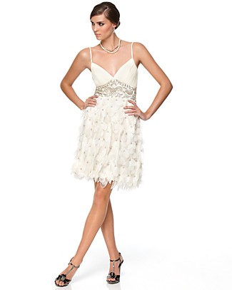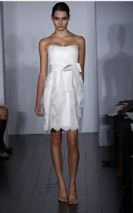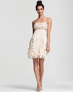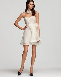 Answer: Don’t fret! Haven’t you heard of a change of wardrobe? Celebrities do it all time for awards shows and performances so why not take a cue from their style page. I had my glorious Lloyd Klein couture gown for the wedding, the amazing photos and through the first dance and meal. THEN, it was time for the party to begin and I made a dress change. I had a short Valentino dress that was similar to my pink/peach wedding gown. This is not the time to throw on just any cocktail dress and definitely not an LBD. It would be ideal to continue the elegant look of your wedding with a dress that is within the same hues of your gown yet shorter, lighter and easier to move in, particularly for the dance floor. Have a beautiful day and hit the dance floor and cut the cake in one of these under $400 options, many of them I found through thefind.com.