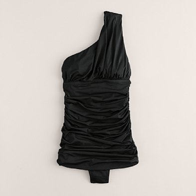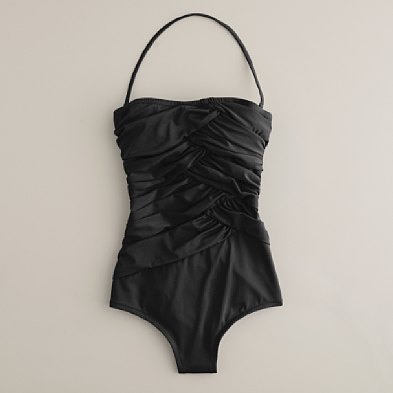 So let’s embrace that black is back big time in swimwear and even more helpful can be a one piece swim suit with ruching. That simple pleating of fabric that distracts the eye and slims the tummy with it’s lovely detail.